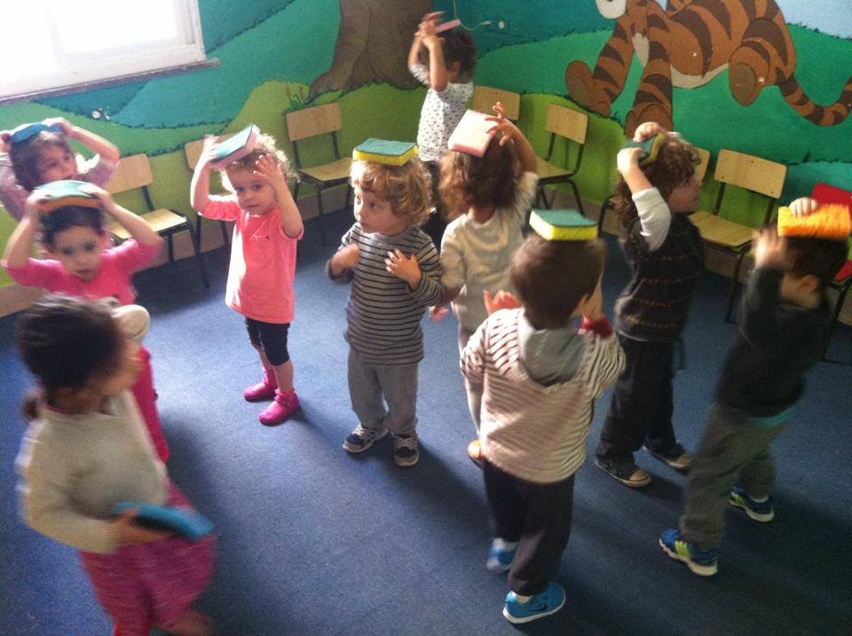 משחק מחבואים- הנחתי על הרצפה 3 כוסות, כל פעם החבאתי מתחת לכוס את האגוז, ערבבתי את הכוסות. הילדים עקבו אחר הכוסות ואמרו איפה האגוז
