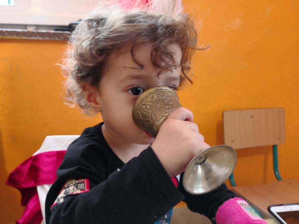 דיברנו על כד השמן ועל נס חג החנוכה, קישרנו את הכד לשמן הזית שעליו למדנו לא מזמן ונזכרנו שגם אנחנו הכנו שמן זית מזיתים, טעמנו אותו וגם ציירנו איתו.